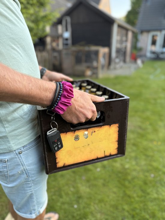 Op zoek naar een handige én stijlvolle accessoire? Deze sleutelhanger scrunchie is een echte must-have! Gemaakt van zachte stof in het beige met leuke patroon met roze details , en afgewerkt met hardware en ring in de kleur naar keuze – perfect om je sleutels aan te hangen of om gewoon als polsaccessoire te dragen.